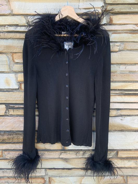 Marques Almeida Black Merino Feather Trim Cardigan VSP Consignment Very well made.