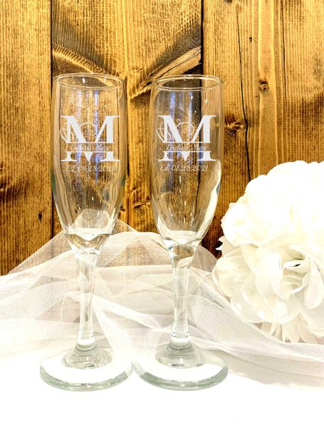 Custom Engraved Champagne Flutes with Monogram Letter All Custom Very well made.
