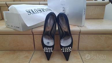 Decollete in camoscio nero con cinturini strass Swarovski Brenda Zaro F1684 Very well made.