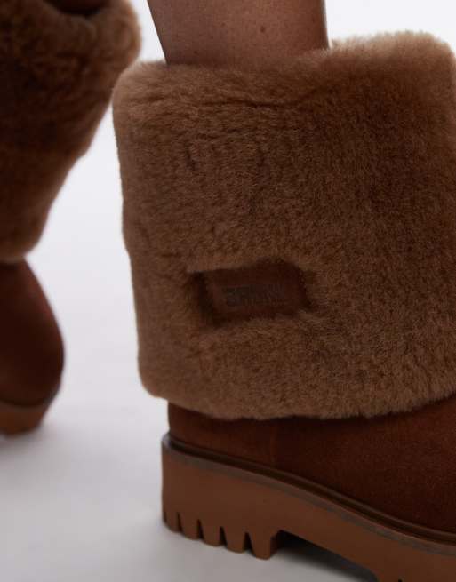 Bronx Groov y shearling fold over ankle boots in cognac suede ASOS Very well made.