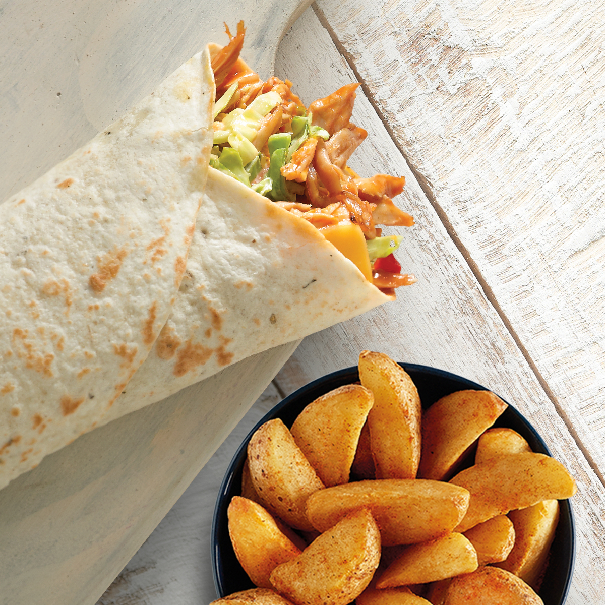 Pulled Chicken and Cheese Wrap any Single Side Very well made.
