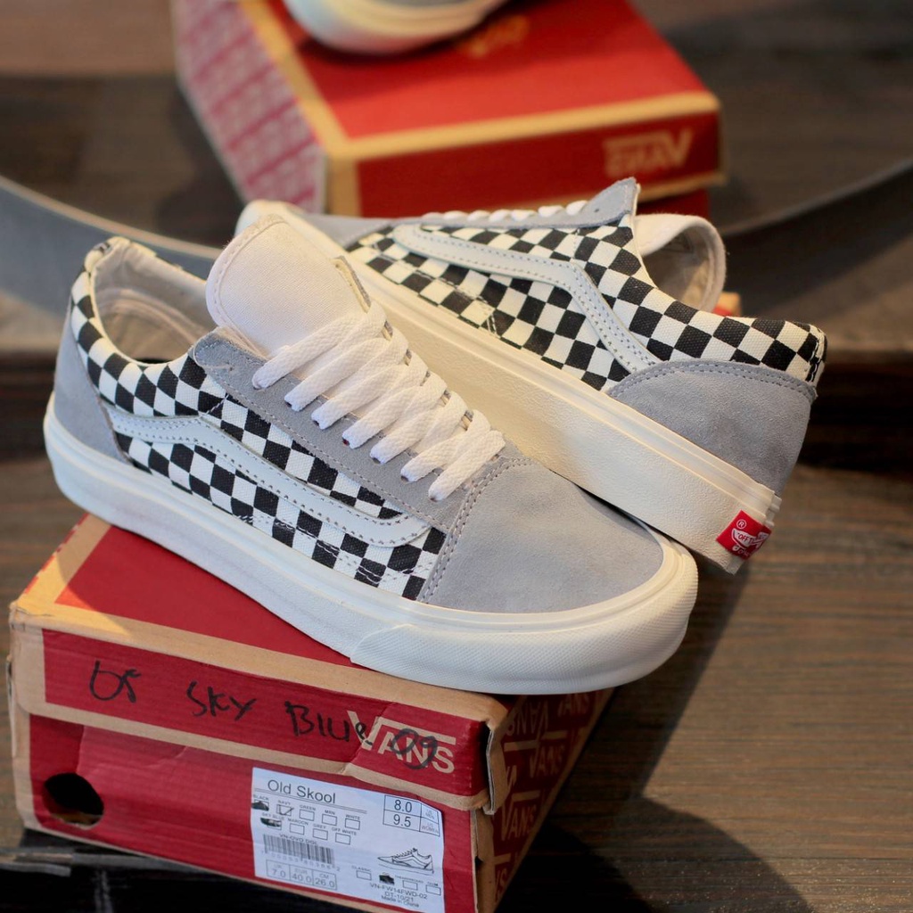 Gray checkered old skool vans top