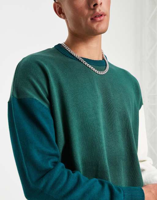Green Color Block Sweater Very well made.