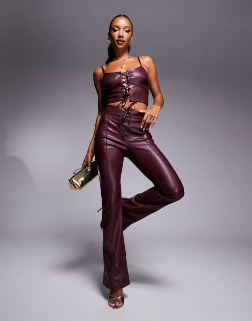 New Look leather look lace up cami top co ord in dark burgundy ASOS Very well made.