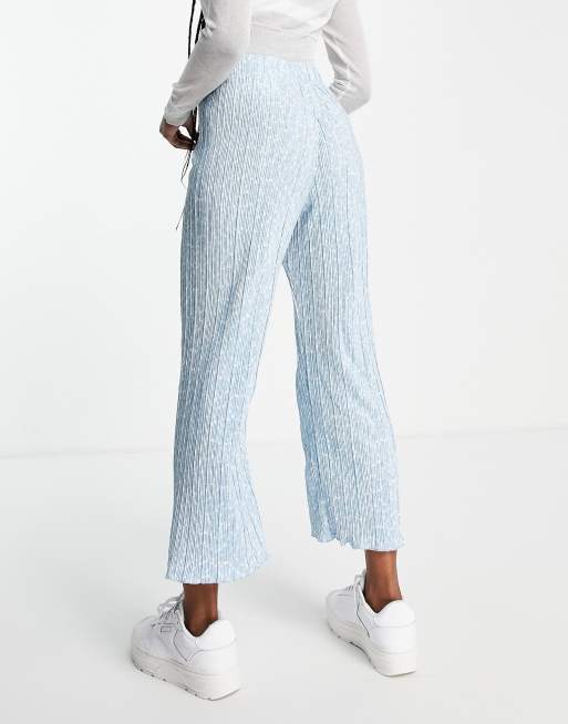 Monki Ocean plisse floral wide leg trousers in blue MBLUE Very well made.