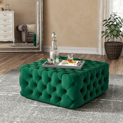 Emerald Green Velvet Buttoned Footstool Very well made.