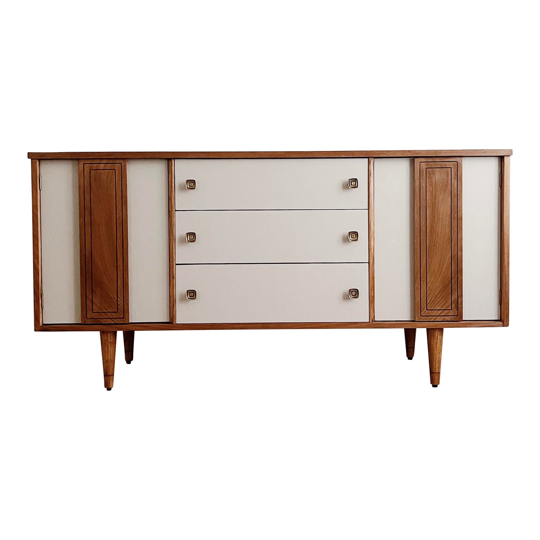 Petite Mid Century Modern Walnut Credenza by Stanley Furniture at Very well made.