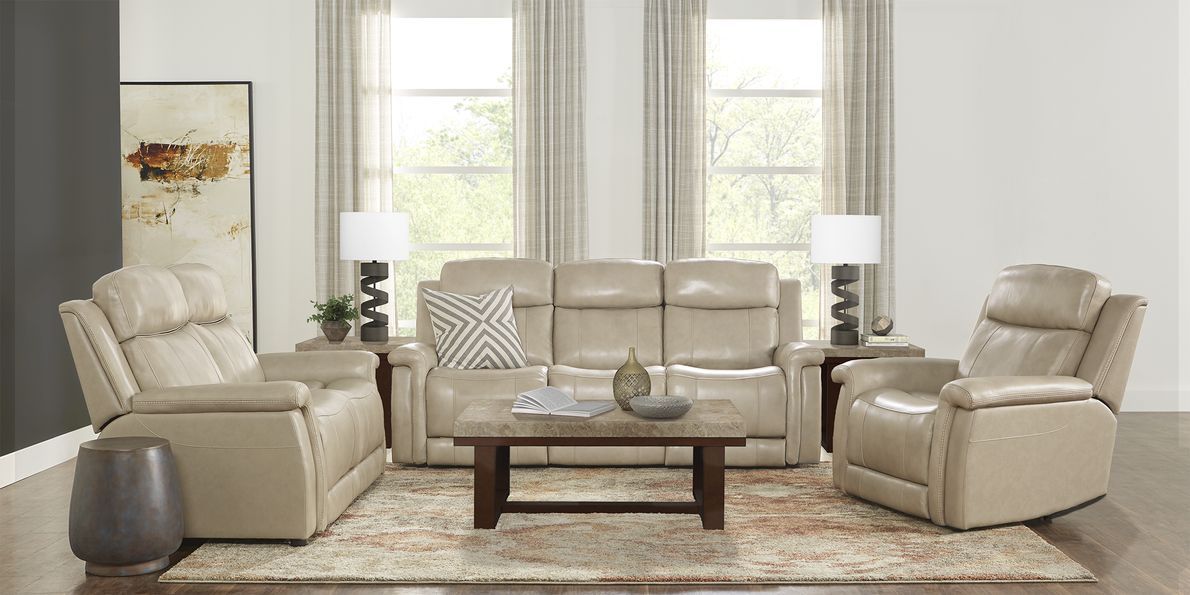 Orsini Beige Leather 5 Pc Living Room with Dual Power Reclining Sofa Very well made.