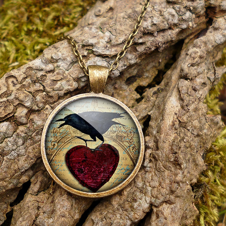 Raven and Red Heart No.1 Large Necklace RR06 Folksy Very well made.
