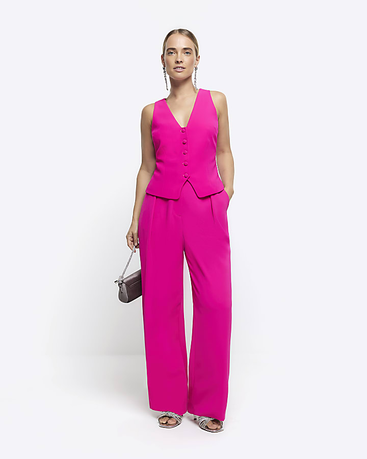 Pink pleated wide leg trousers River Island Very well made.