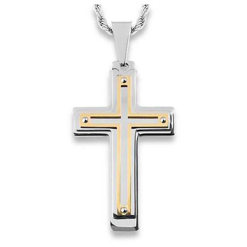 Ladies Domed 925 Sterling Silver with 14k Yellow Gold Crucifix Cross Pendant Necklace 35mm 18in 2.9mm Marine Cable Chain Very well made.