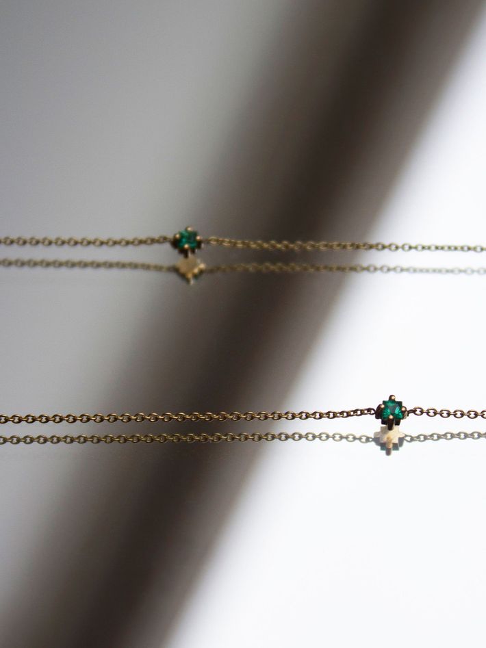 Princess cut emerald floating necklace by Lizzie Mandler Finematter Very well made.