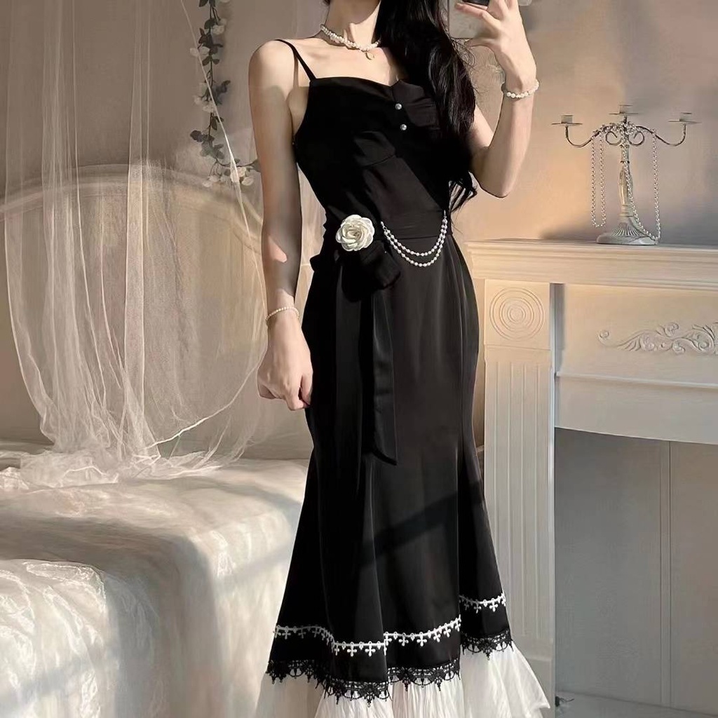 JS prom Evening Dinner Gown Fishtail formal dress temperament Spring and summer suit design sense girly lace waist show thin bag hip fishtail dress bow lace cardigan Shopee Philippines Very well made.