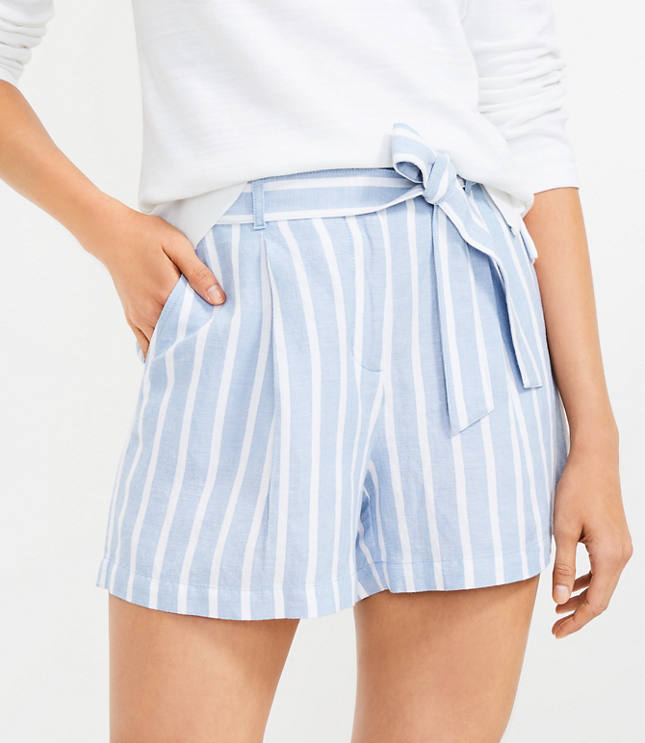 Paper Bag Striped Shorts in Linen Mix Fabric Blue Very well made.