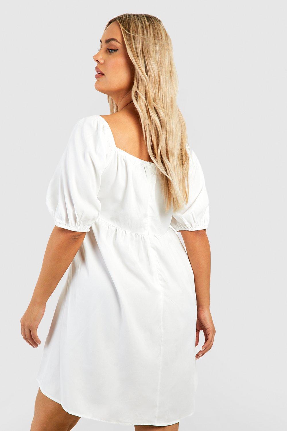 Plus Woven Puff Sleeve Smock Dress boohoo DK Very well made.