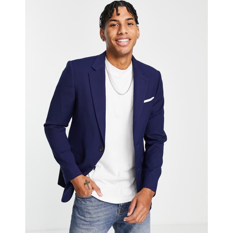 Burton skinny fit texture suit jacket in navy ASOS Very well made.